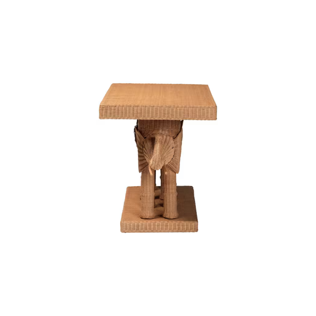 Expertly crafted from the finest natural rattan, the Rattan Elephant Console is a one-of-a-kind piece that will add a touch of elegance and charm to any room. Each console is handmade, making it unique and truly special. Bring the beauty of nature into your home with this stunning console.