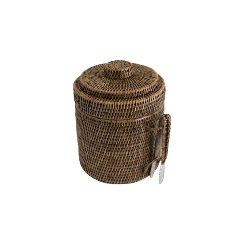 Handwoven Rattan Ice Bucket with Lid and Tongs – Dark Natural Finish