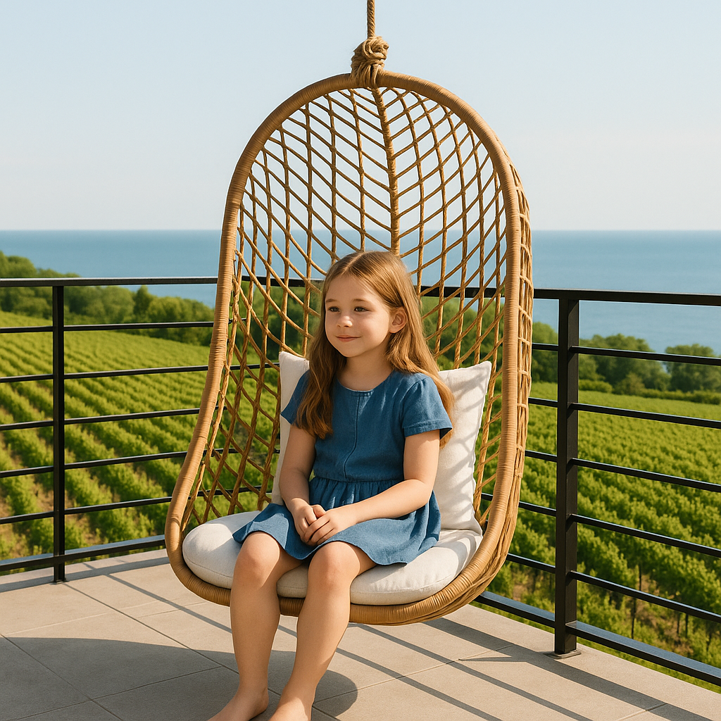 The Hanging Rattan Lounge is a stylish, outdoor swing, perfect for relaxing on patios or gardens. Its cozy design offers comfort, elegance, and a touch of tropical charm.